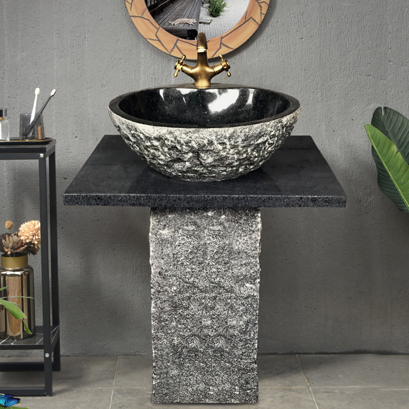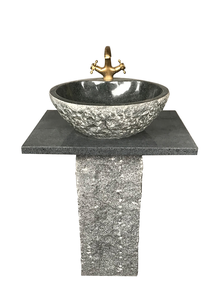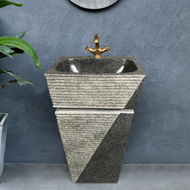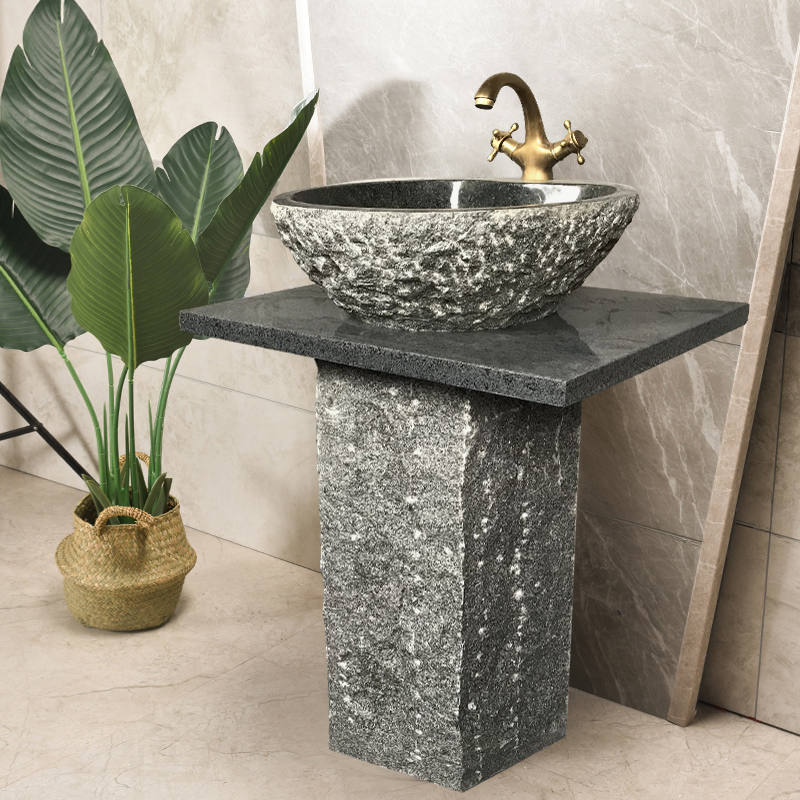Marble wash pool basin in one floor Chinese outdoor courtyard balcony stone vertical wash basin