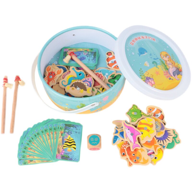 Baby Fishing Toy Children Puzzle Magnetic Wood Suit Kindergarten Small Kids Fun Male Girl