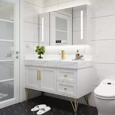 Rock plate integrated basin Smart Nordic bathroom cabinet combination Solid wood floor wash basin cabinet Wash table powder room