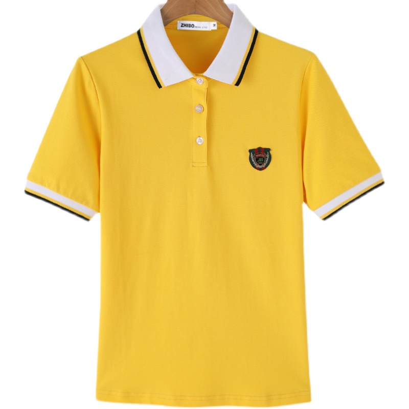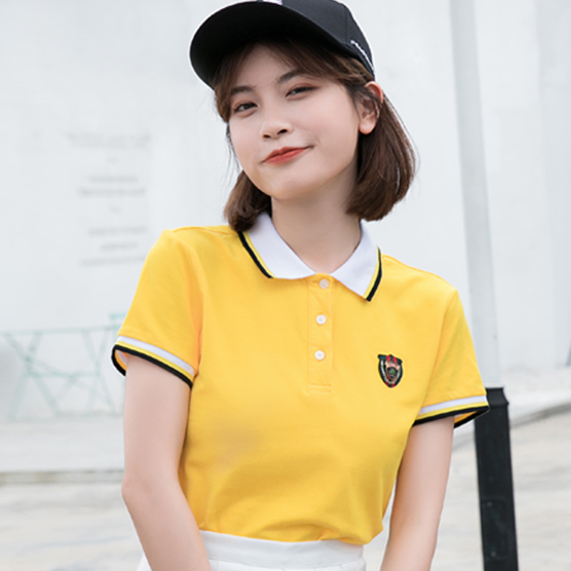 Red side white polo shirt with logo lady's red side white polo shirt with male section yellow with logo polo shirt woman in yellow with Peupolo shirt male red side white polo shirt with no sign
