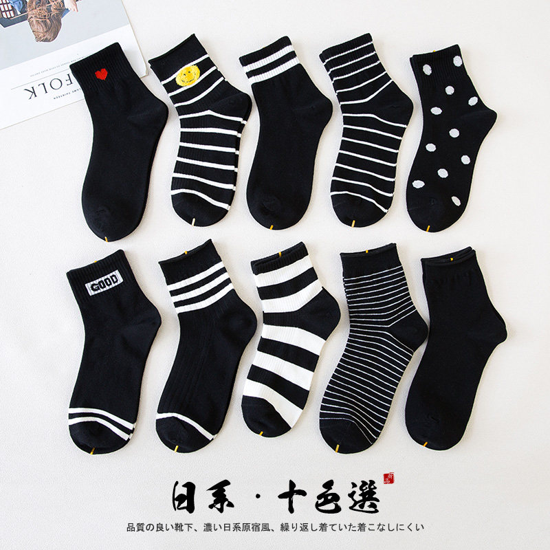 Socks Woman Midbarrel Socks Spring Summer Full Cotton Suck Sweat Long Socks ins Chains Pure Cotton Deodorant Suction sweat Striped Spring Thin Socks