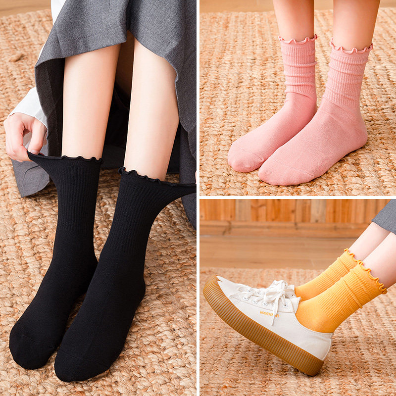 Socks Lady Spring Summer Pure Cotton Deodorant Suction Sweaty Socks Japan 100 Lap Cute Agaric Side Bubble Socks Long Version Socks