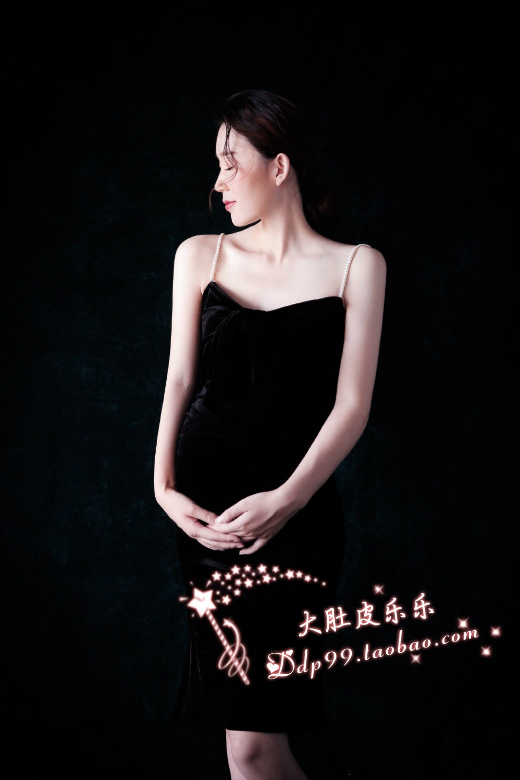 836 Pearl Maternity Photo Photography Photo Clothing Velvet Skirt Rental Photo Studio Fashion Retro Maternity Photo Black Dress