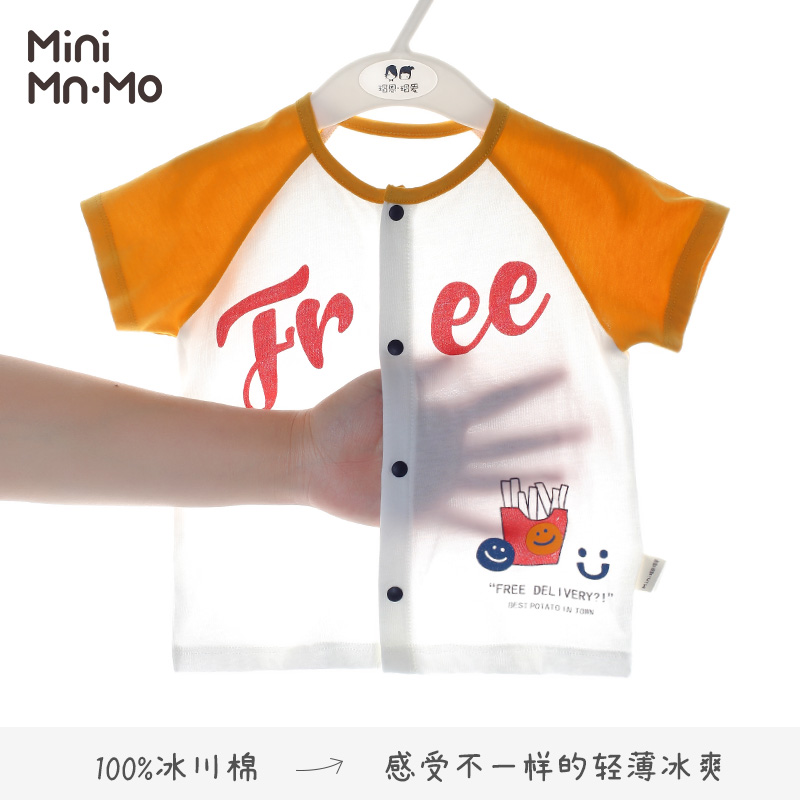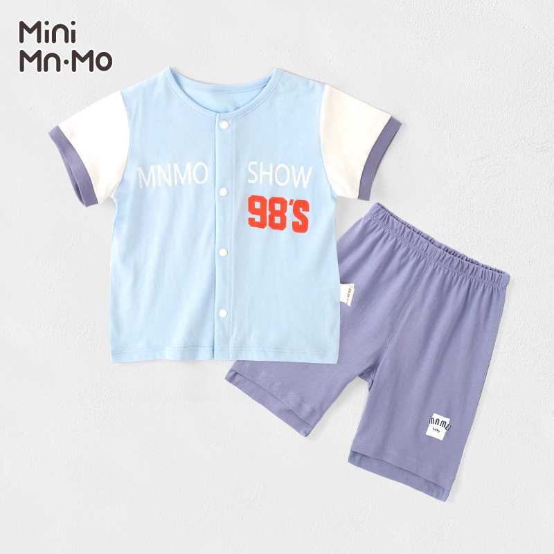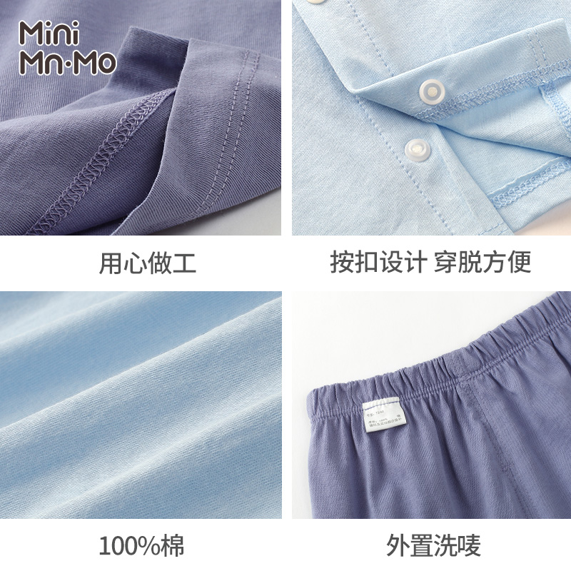 Bo En Bo love 2021 Summer Glacier pure cotton cardigan jacket suit male baby boy thin short-sleeved detachable crotch two-piece set