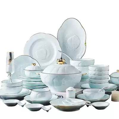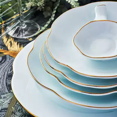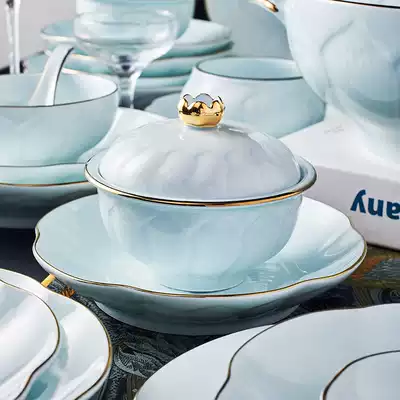 Light luxury European style with gold-edged dishes set home Jingdezhen bone porcelain tableware celadon bowl chopsticks plate ceramic combination