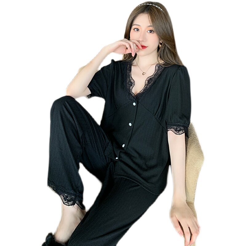new pit strip cotton V collar short sleeve long pants pink new pit strip cotton V collar short sleeve long pants white new pit strip cotton V collar short sleeve long pants black