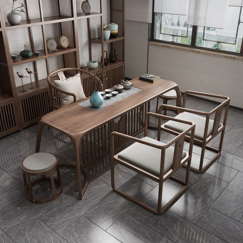 New Chinese style solid wood tea table and chair combination Zen simple leisure tea table reception reception guest tea table B&B hotel