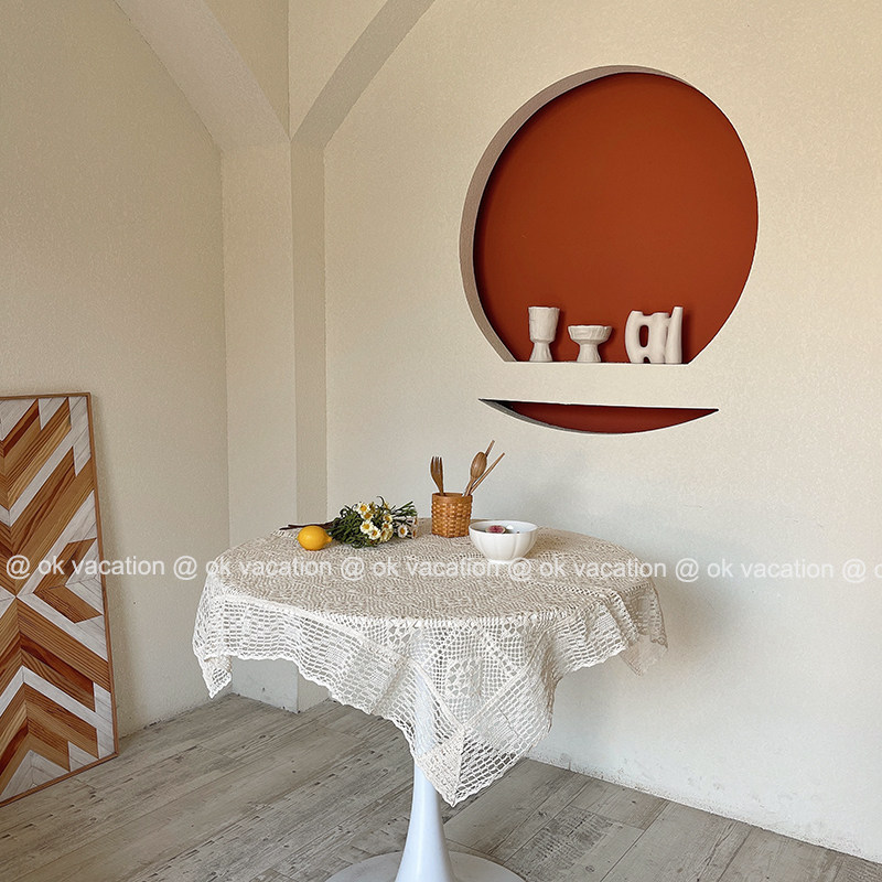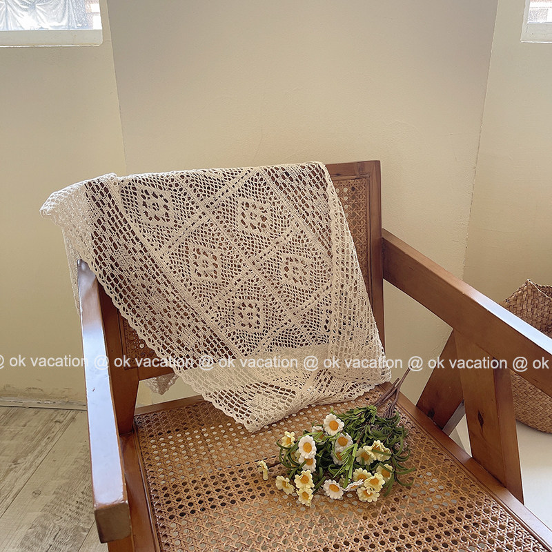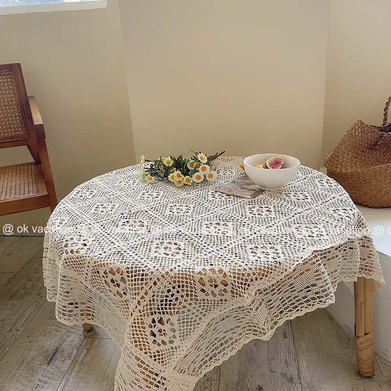 ins wind pure cotton tablecloth placemat crochet lace hollow simple pastoral solid color tablecloth shooting background cloth props