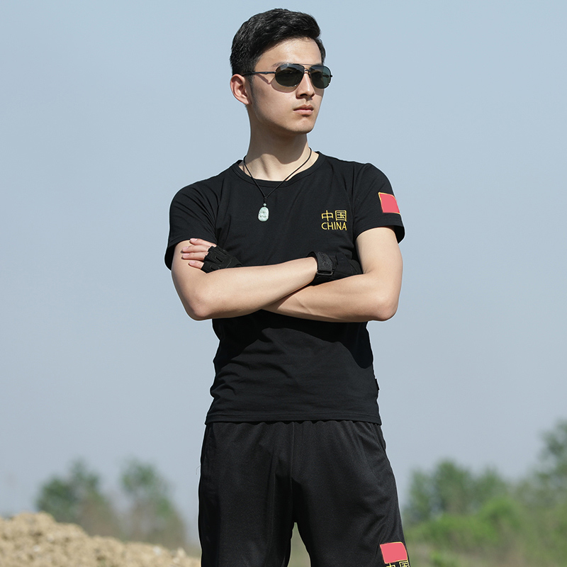 Military fans black short-sleeved t embroidery elastic tactical T-shirt Chinese summer new camouflage physical training suit for men and women