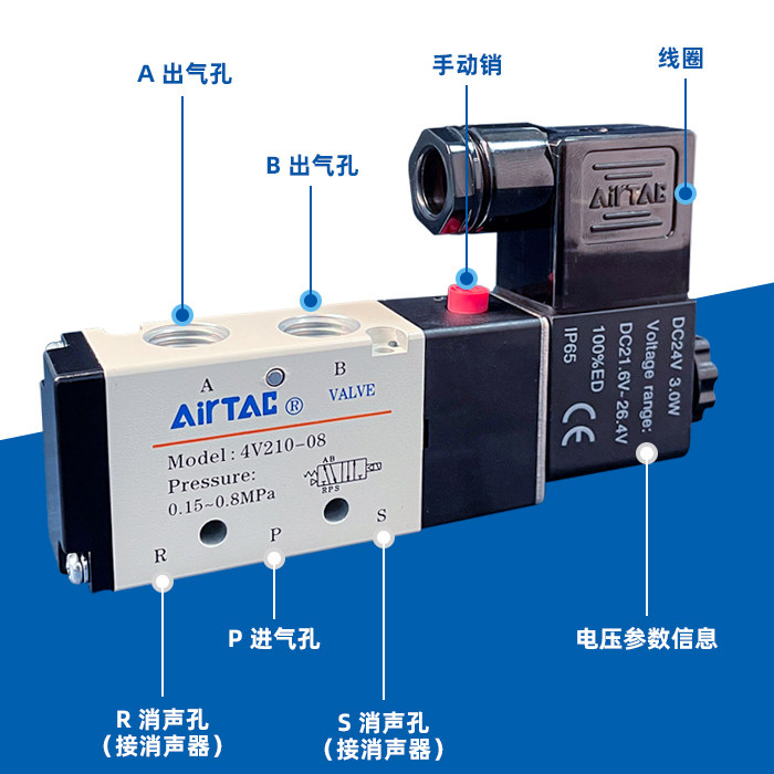 Yadke pneumatic solenoid valve 4V210-08 control valve 310-10 reversing valve 220V two-position five-way DC24V