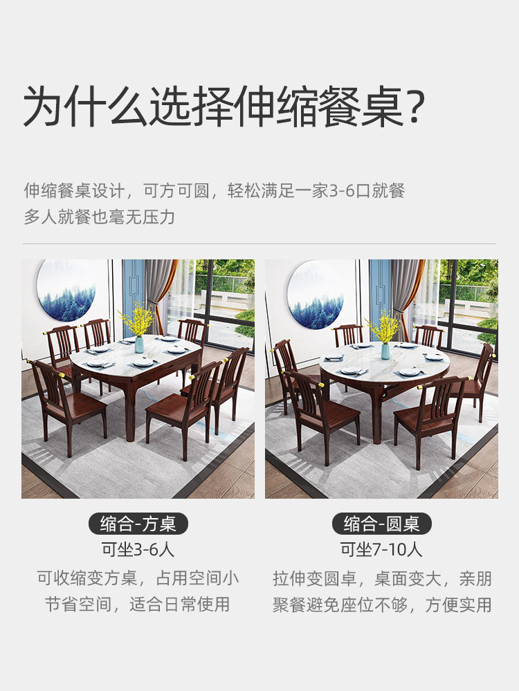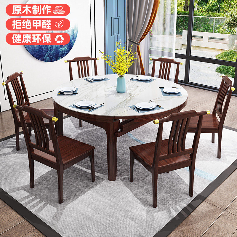 New Chinese-style telescopic square and round dual-purpose square table variable round table Italian-style bright marble solid wood dining table