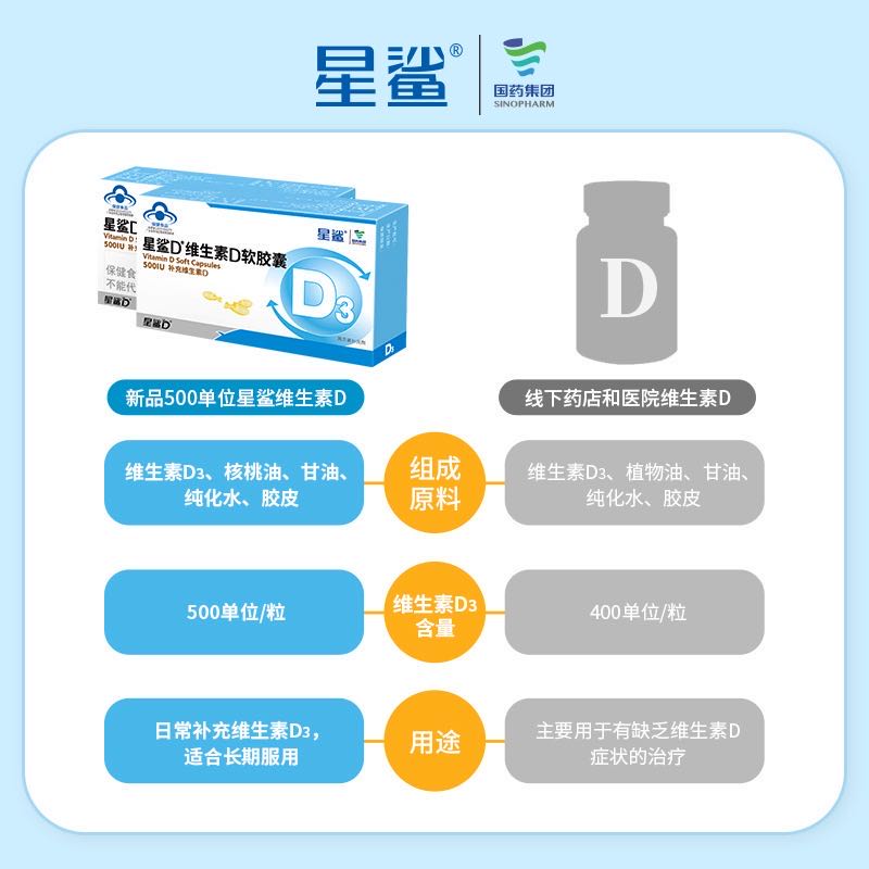 3 boxes of star shark D vitamin D3 toddler D drops soft capsule infants and young children pregnant women calcium tablets adult middle-aged and elderly D
