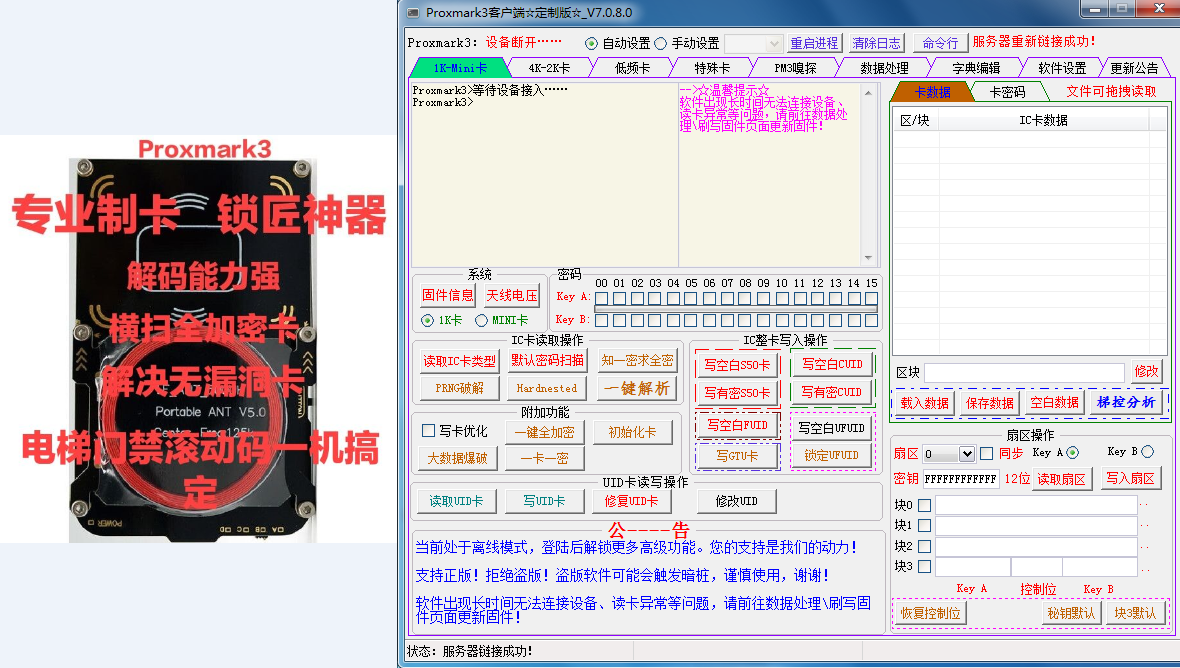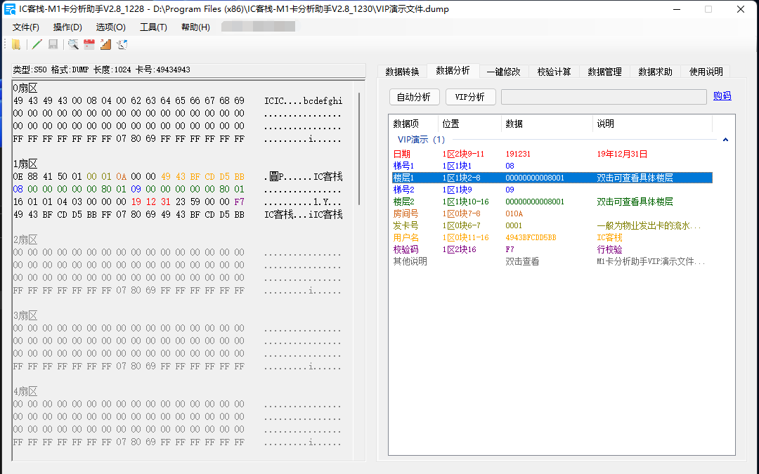 Elevator card Access control card Parking card IC card Use hammer decryptor software to analyze and modify data