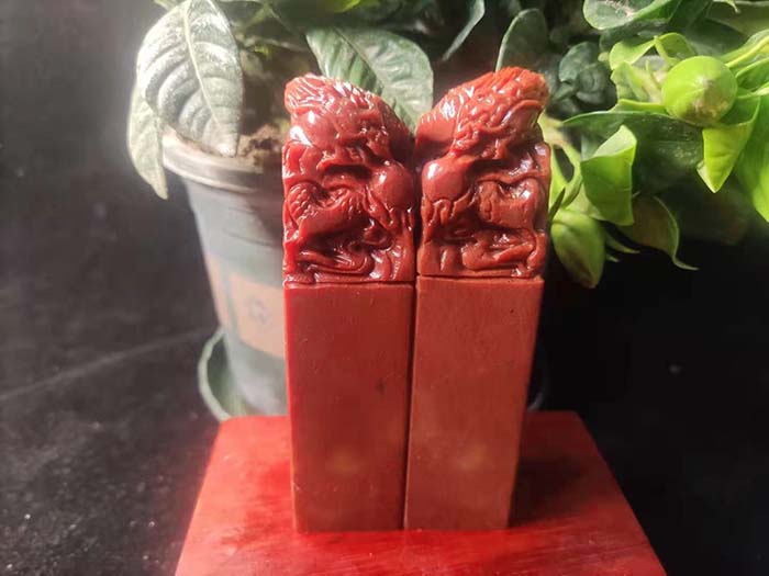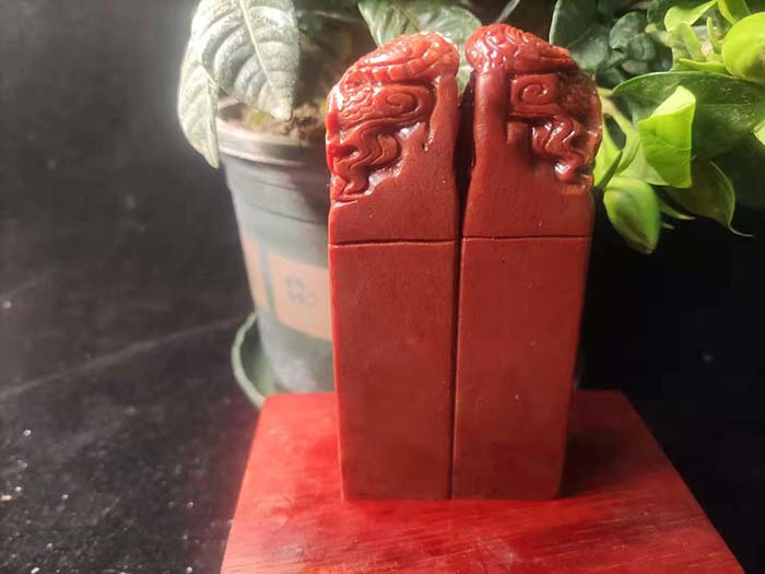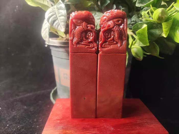 Indian Redstone to Zhang Zhejiang Redstone Twist Head Chapters Ancient Beast Gold Stone Seal Engraving 2 5 * 2 5 * 10 Seal Collection