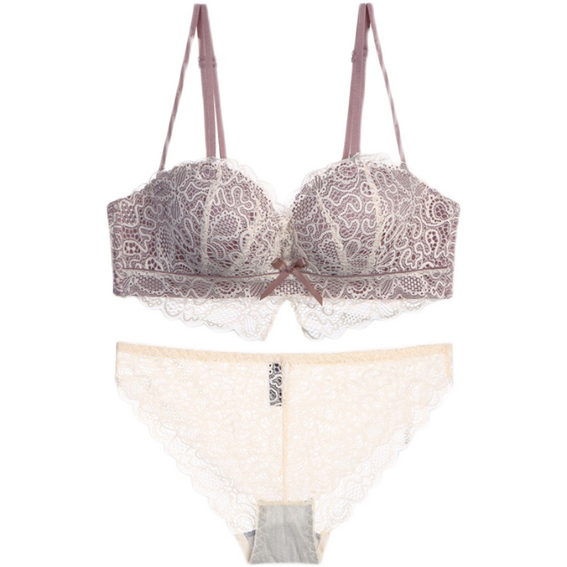 Japanese mumuain lingerie women's small chest gathered large upper bracket no rim sexy lace bra set