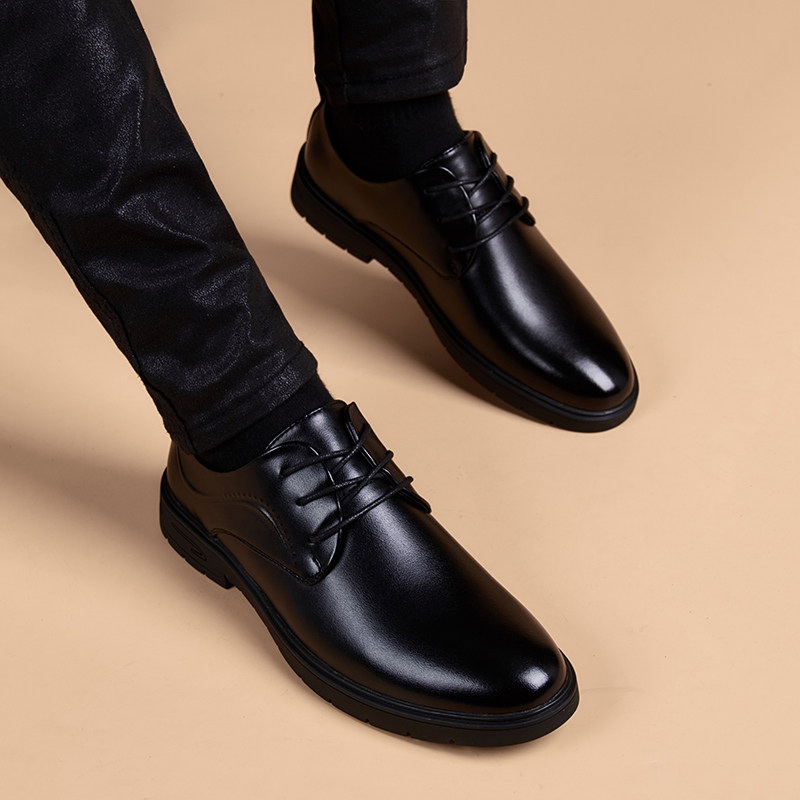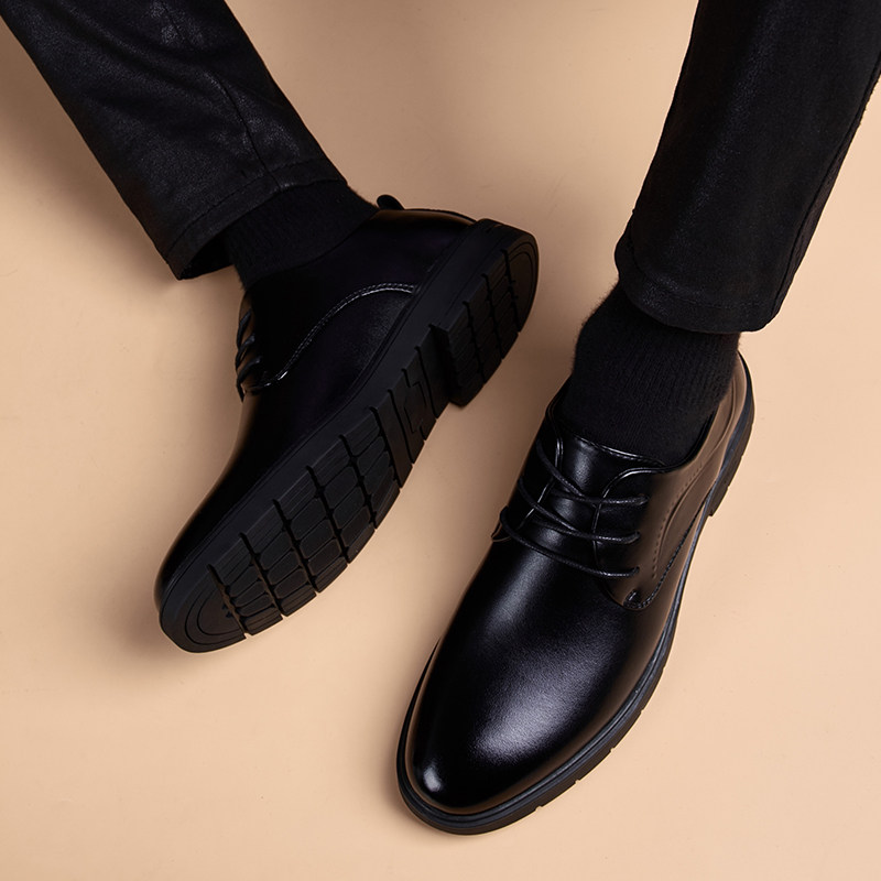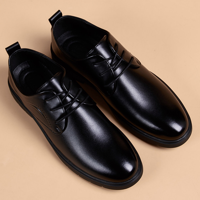 Round Head Leather Shoes Men's Youth Han Edition Business Positive Dress Men Shoes Heightening Inglén Trend Genuine Leather Soft Bottom Casual Leather Shoes Man