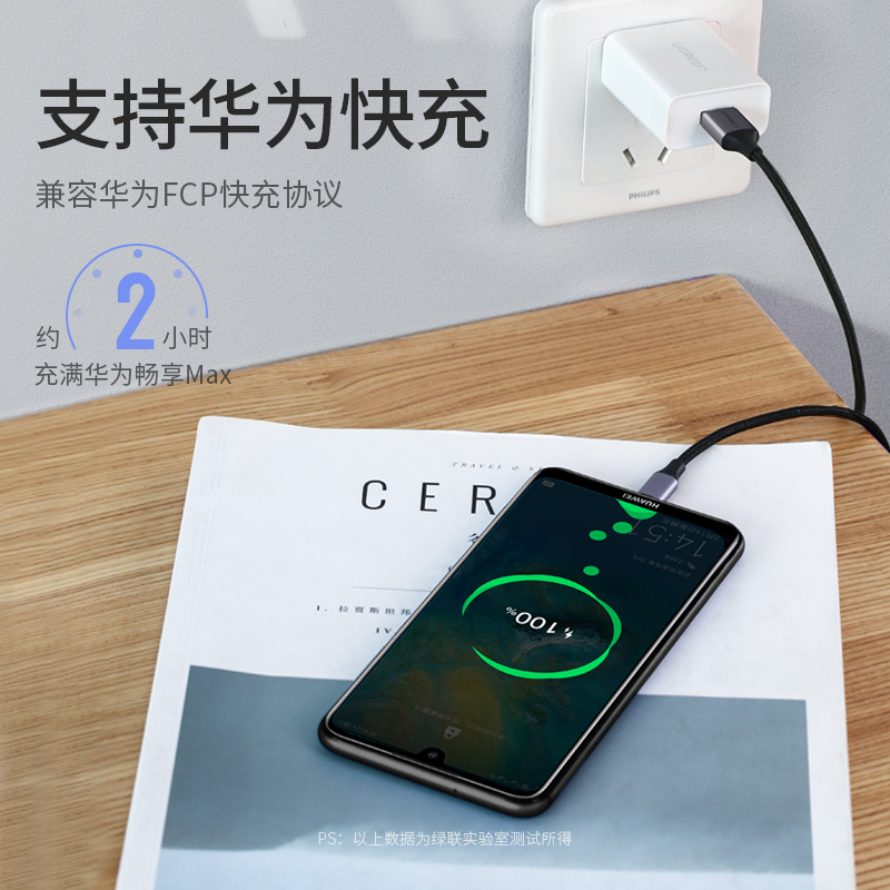Green Union Android data line Fast charge lengthened 2 m charger braided wire MicroUSB mobile charging and charging wire suitable