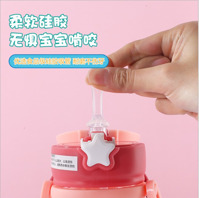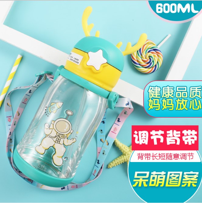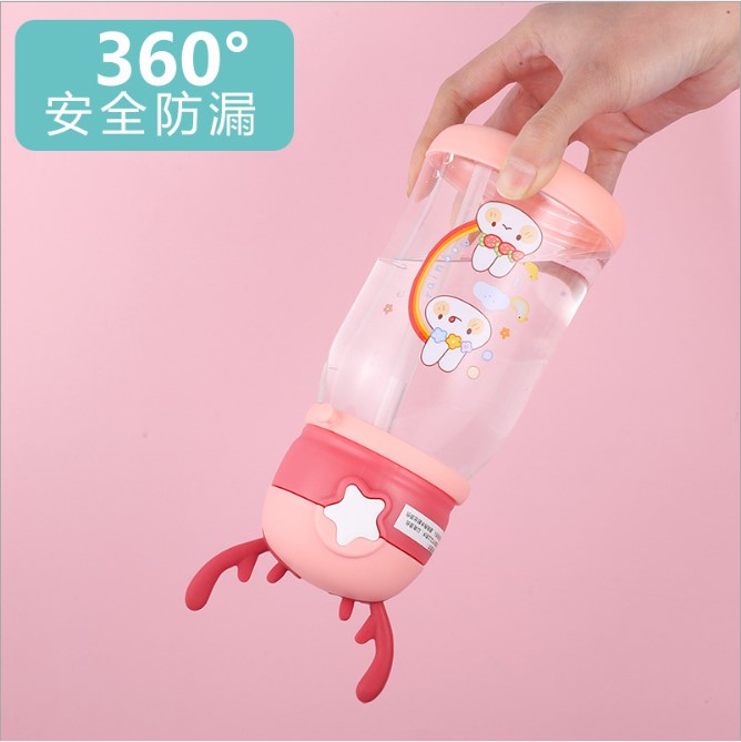 Large-capacity cartoon antler cup student cute sports strap kettle plastic cup children straw cup gift customization