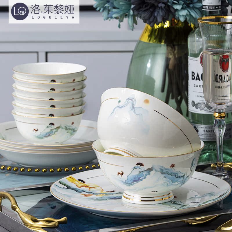 LO GULEYA bone porcelain Phnom Penh Dish Suit Home Light Lavish Jingdezhen Cutlery Cutlery Bowl Tray Combined Upscale Gift