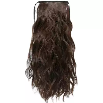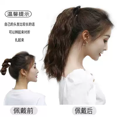 Full real hair ponytail wig female net red short strap micro roll Medium long natural wool roll Corn hot incognito patch