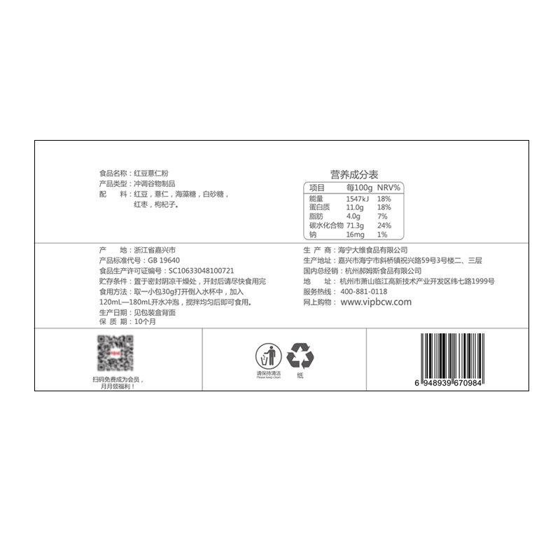 (Thyme-red bean pearl barley powder 420g) Five cereals Cereals Nutritional Breakfast Ready-to-eat and Drink Meal Powder Porridge