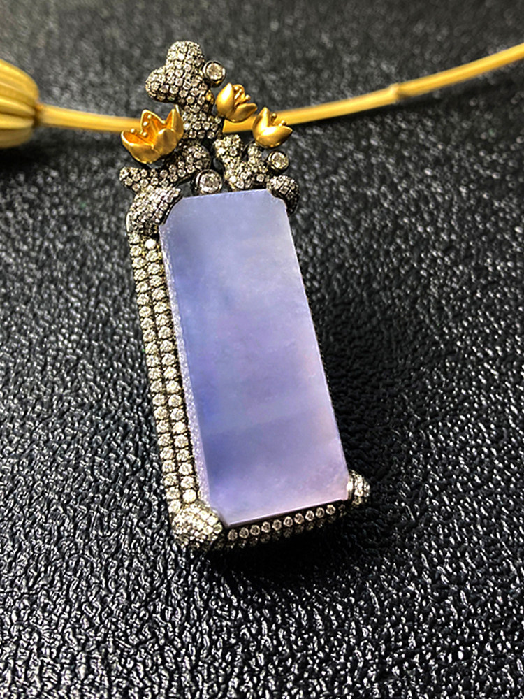 Colorful Yunnan Burma A goods natural jade belt certificate 18K gold inlaid violet safe and sound pendant