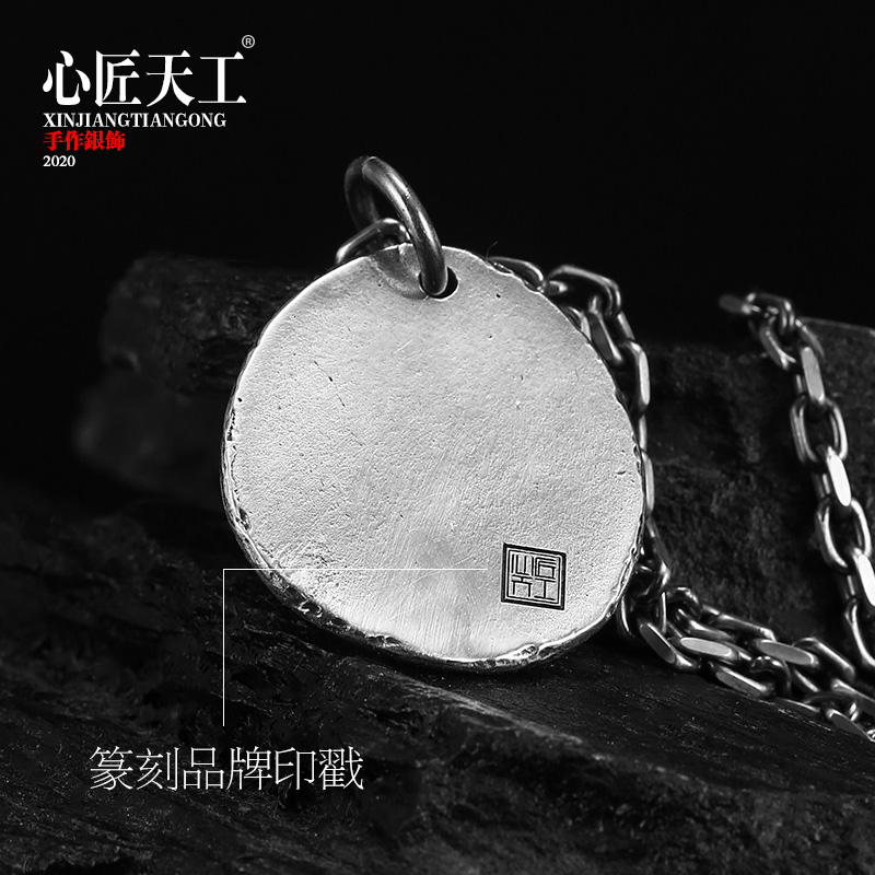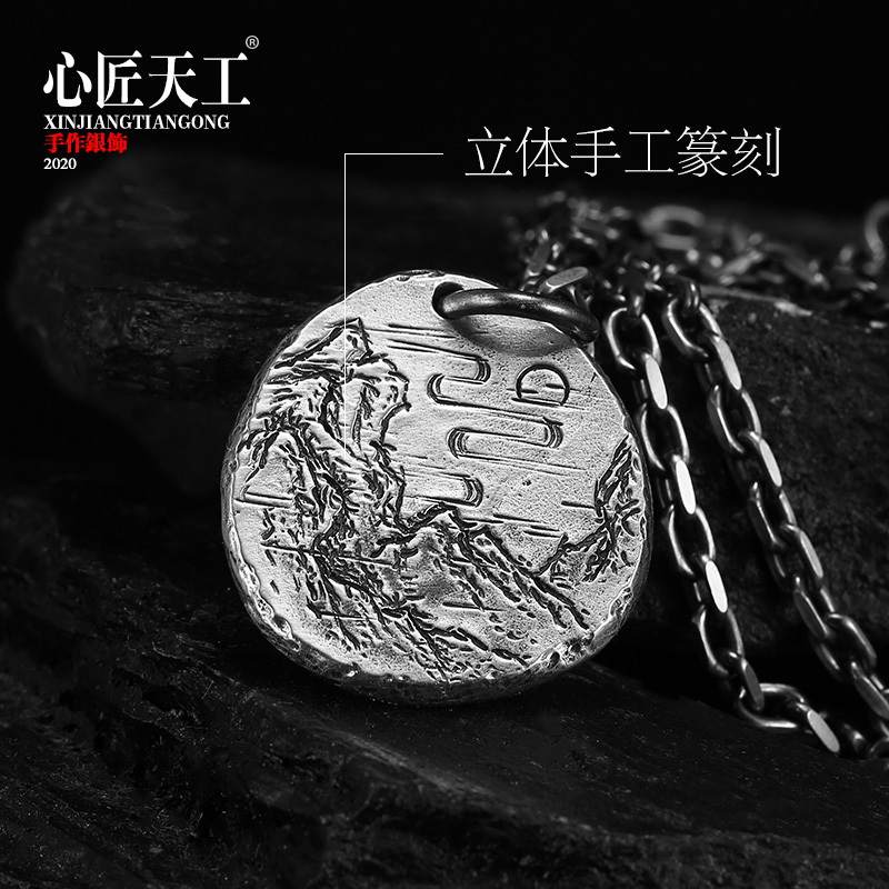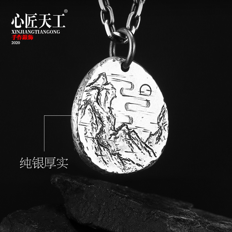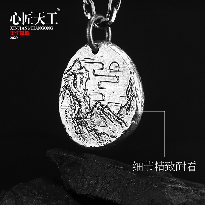 925 Pure Silver Necklace Male Tide Man Accessories Handmade Diy Seal Engraving Landscape Painting Pendant Single Pendant Pendant Small Ornament Delicacy