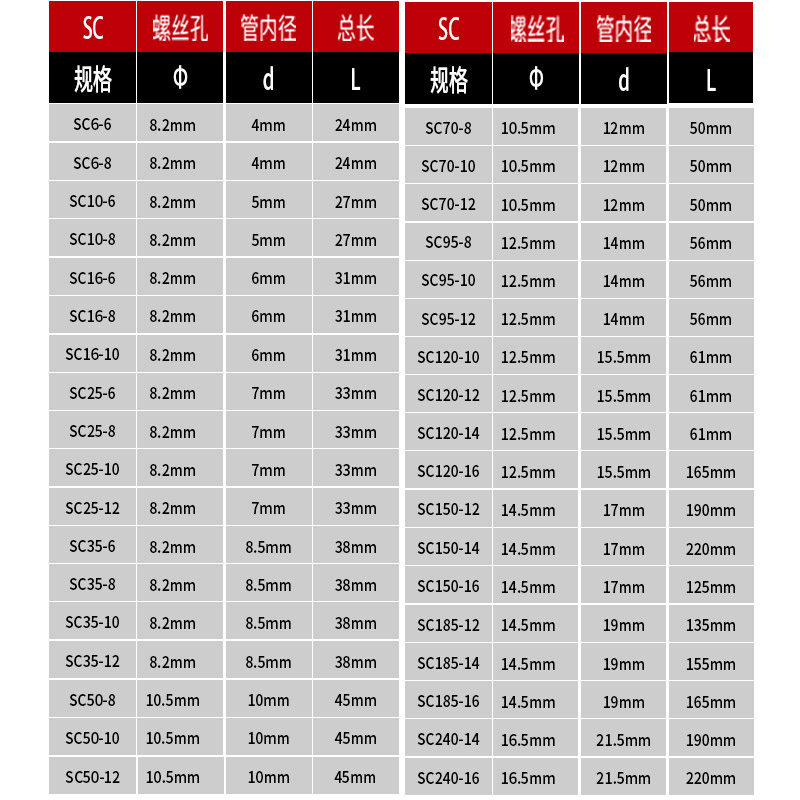 Copper terminal SC peep mouth copper terminal copper terminal copper wire ear electrician copper wire nose wire terminal 120-240