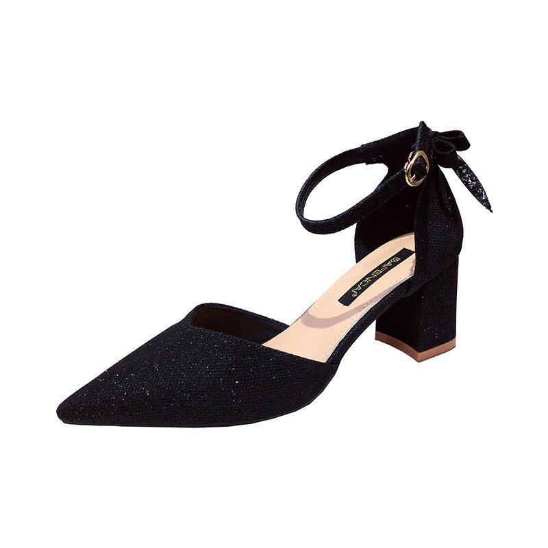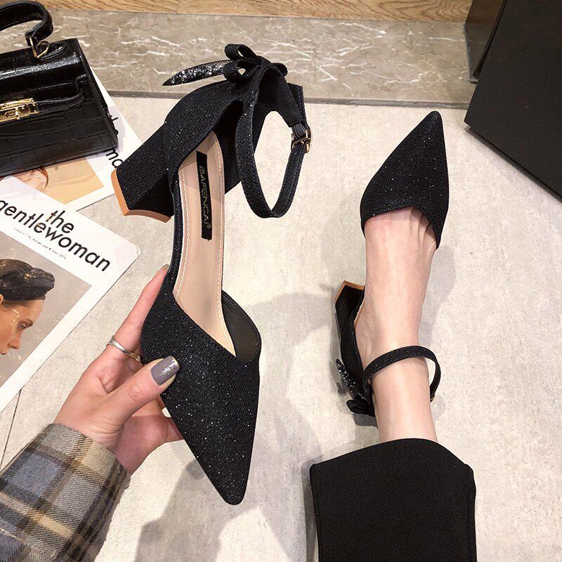 Baotou sandal women 2022 New spring fairy French style High heels Shoes Custard with a straight line of Buttoned Temperament Single Shoes