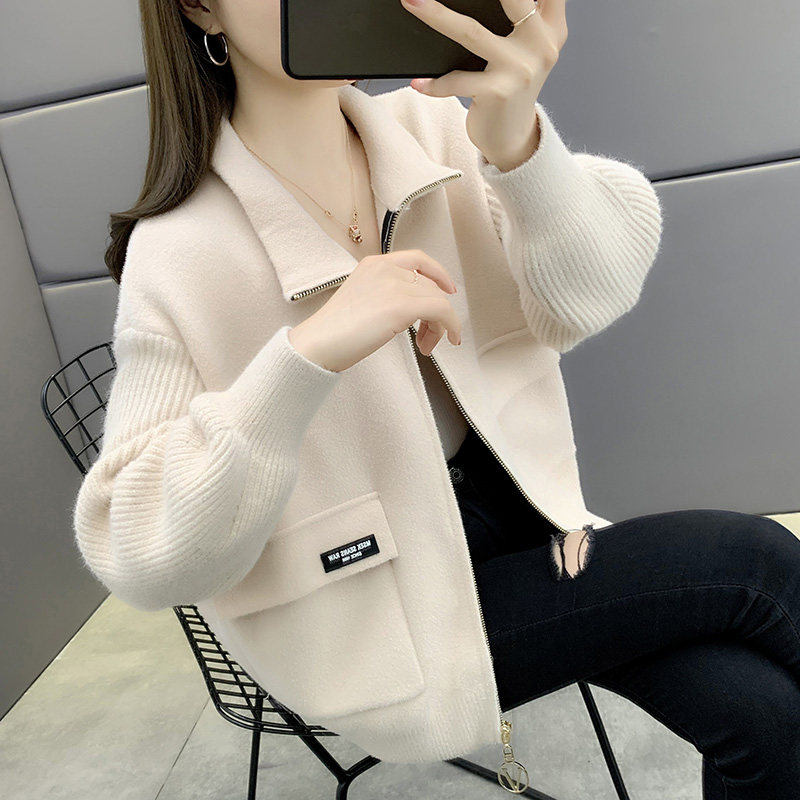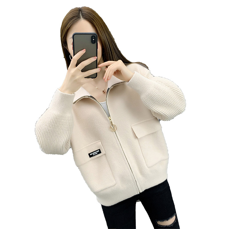 Women's short woolen coat women's 2022 spring and autumn new loose stand-up collar casual jacket top autumn and winter women's clothing