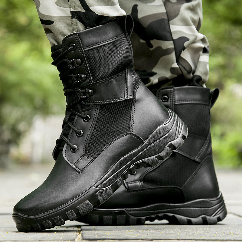 New Outdoor Male High Cylinder Special Soldier Super Light Tactical Boots Combat Training Boots Genuine Shock Absorbing Genuine Leather Spring Summer Security Boots