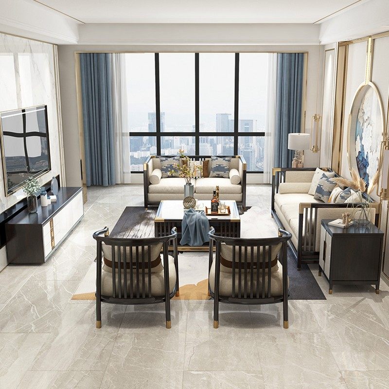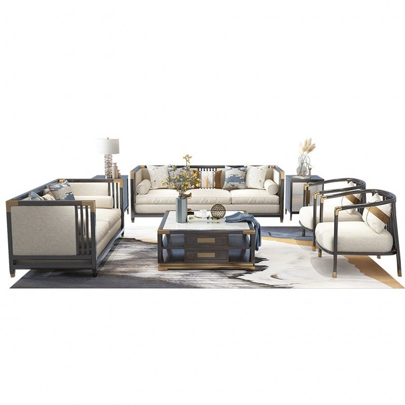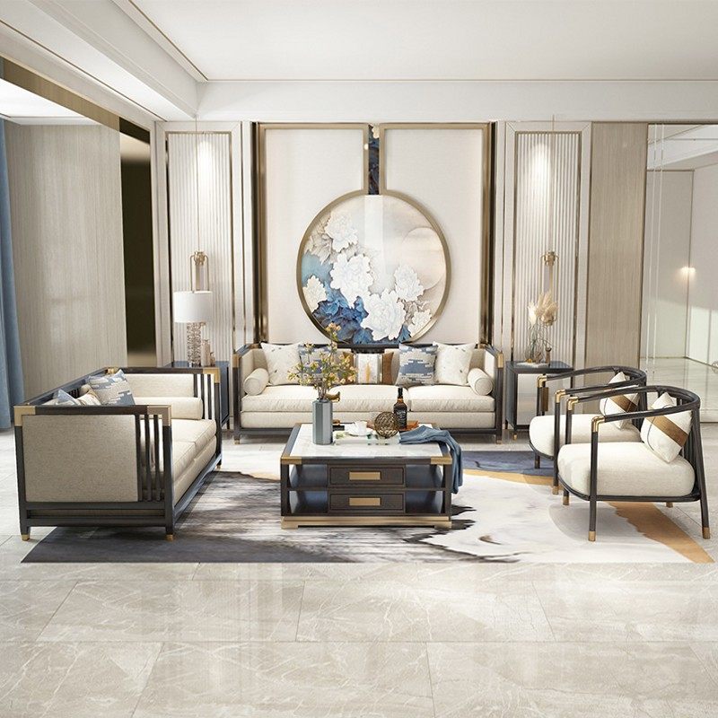 New Chinese style solid wood sofa modern minimalist high-end hotel villa model room light luxury fabric combination sofa furniture