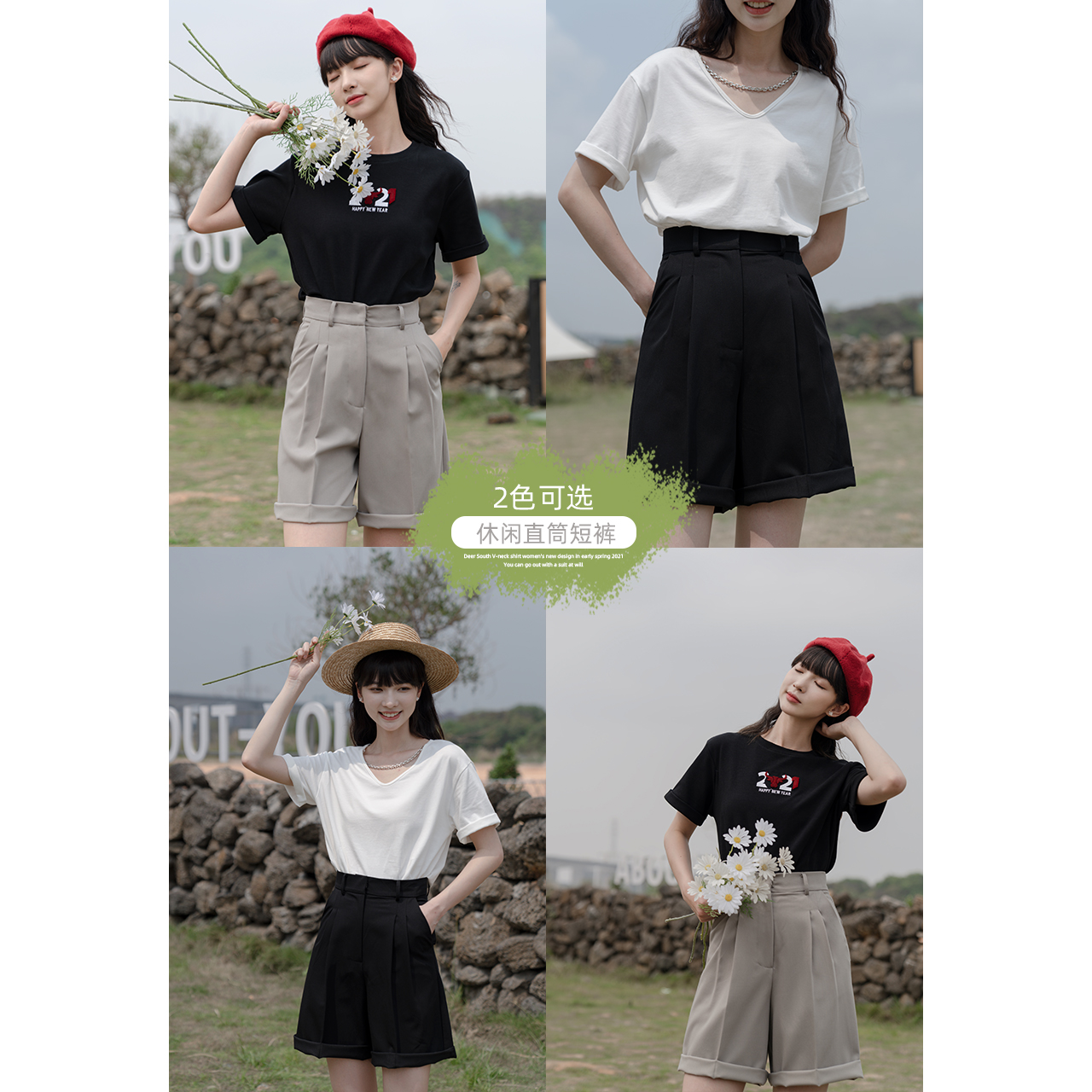 Deer South Black Shorts Woman High Waist Display Slim Fit Pants Summer Loose 2022 New outwear a word pants