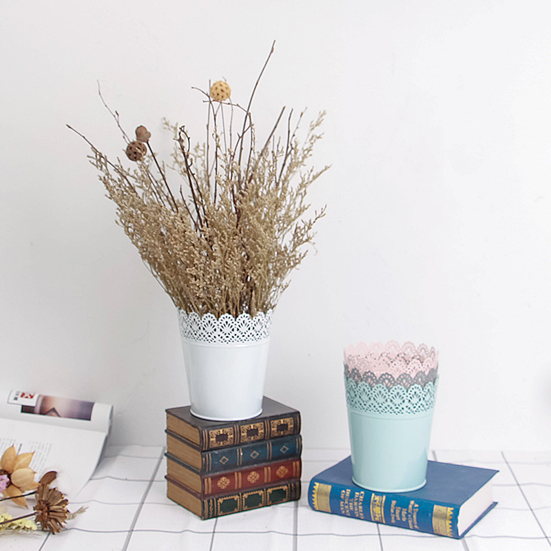 Fields Garden Round Hollowed-out Thickened Iron Sheet Barrel Flower Barrel Festive Wedding Props Flower Pots Iron Barrel Flower Shop Flowers Casks