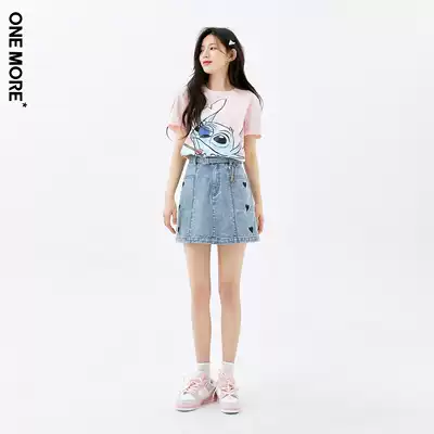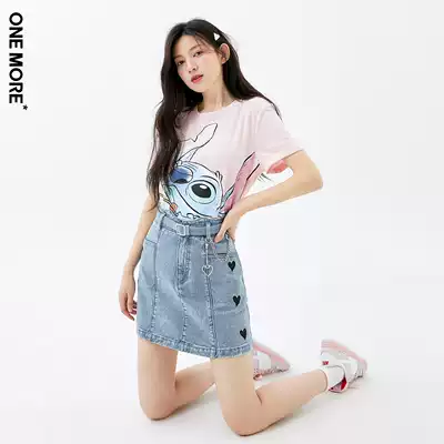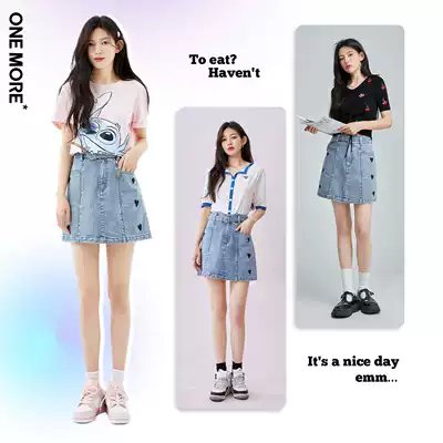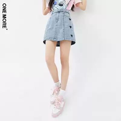 ONEMORE2021 summer new denim skirt female a word denim love decoration high-waisted short skirt female summer