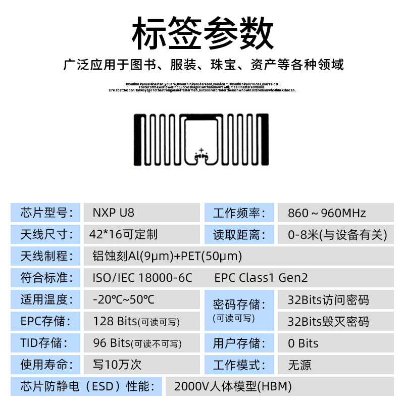 Ultra-high-frequency RFID tag NXP U8 anti-theft chip induction uhf intelligent 6C long distance flexible radio frequency electronic tag-Taobao
