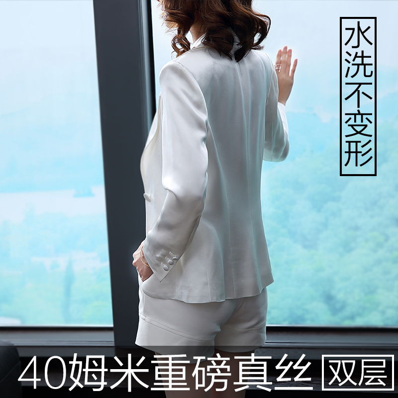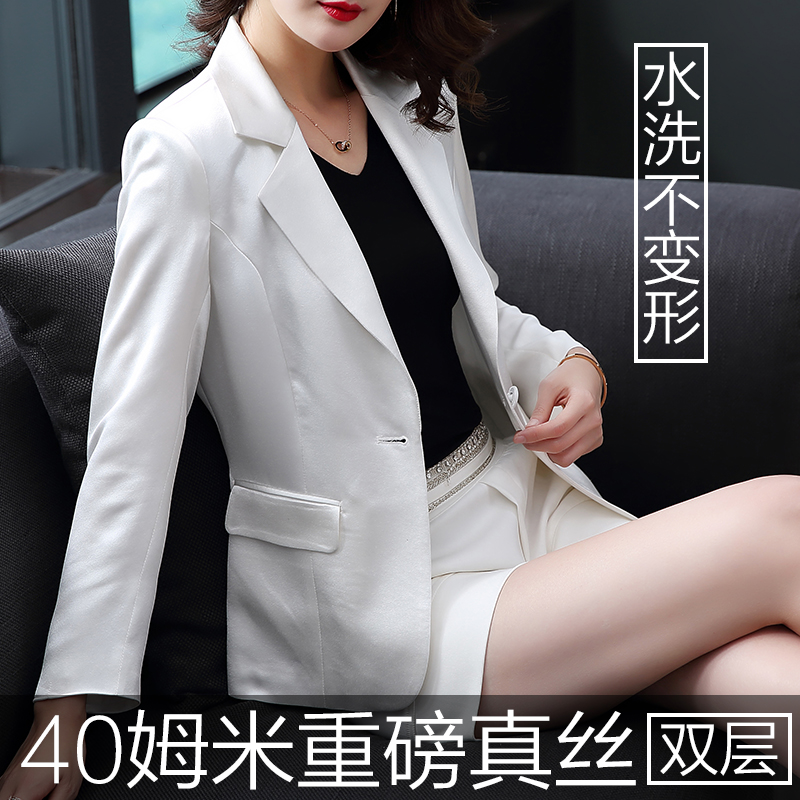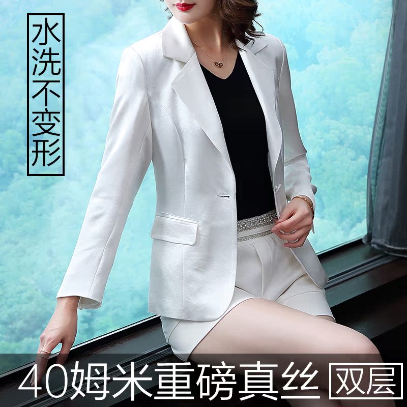 (silk)white small suit jacket female 2021 spring and autumn new design sense temperament mulberry silk suit short section