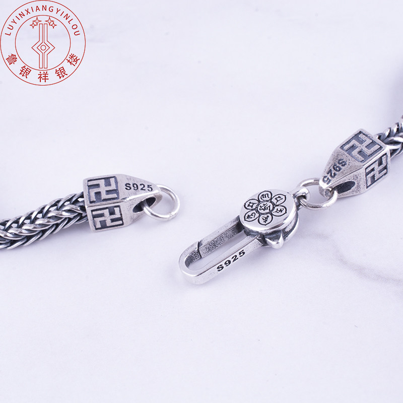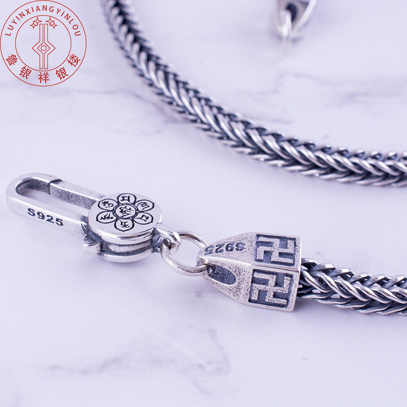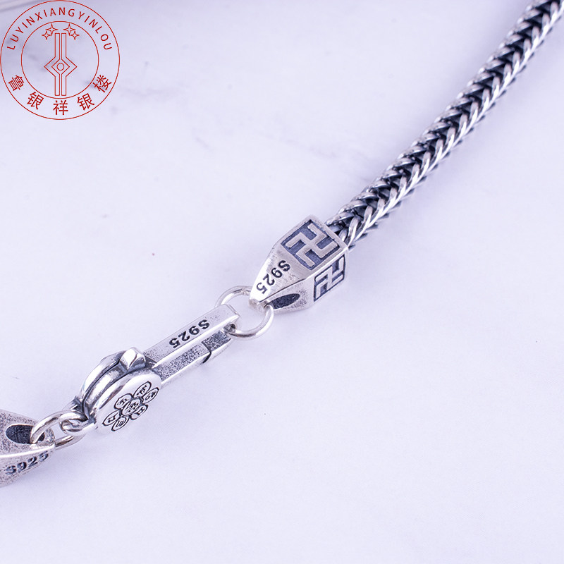 S925 Men's pure silver necklace male retro - curvature brand rough send boyfriend silver - decorated six - word snake bone chain