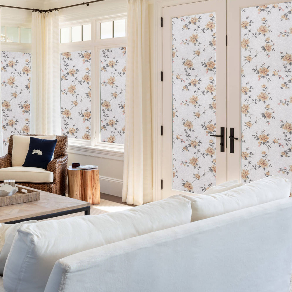 Frosted Anti-Peep Glass Stickers Windows Light Transmission Opaque Makeup Room Anti-Walk Light Bathroom Shading Window Floral Paper Cling Film