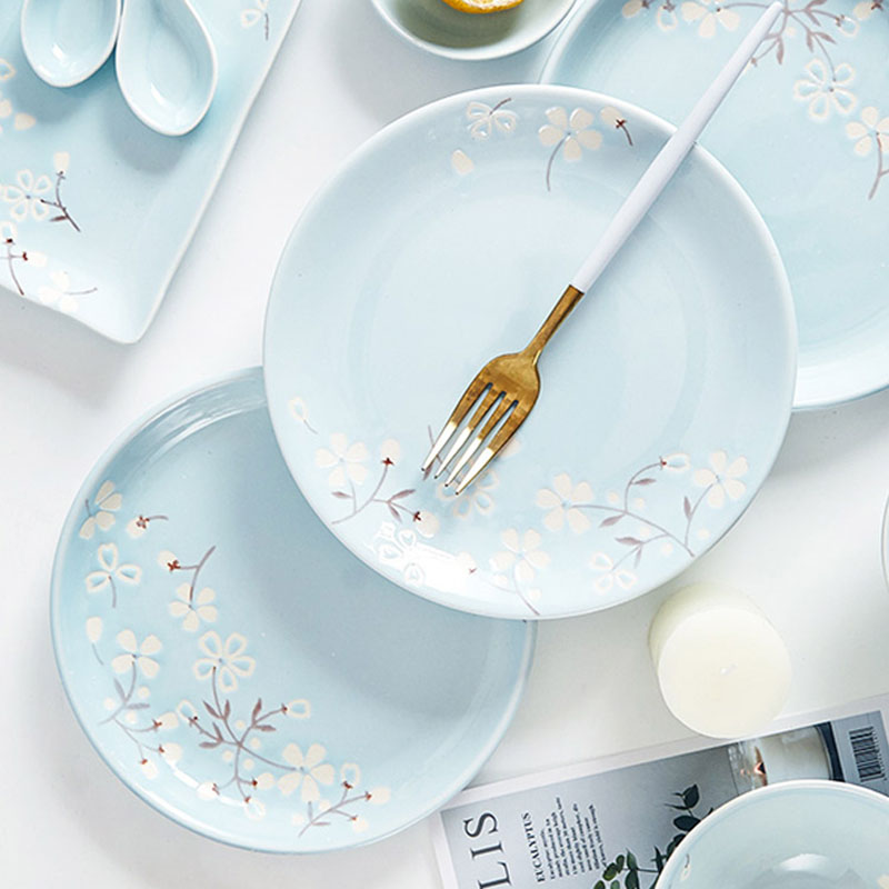 Small bowl (blue) Medium bowl (blue) Put bowl (blue) Slender square plate (blue) Large rectangular plate (blue) Flat plate (blue) Dark plate (blue) Seasoning plate (blue) color) large spoon (blue)