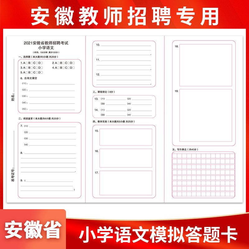 Anhui Provincial Teacher Recruitment Examination Teaching Recruitment Primary School Language Answers Card mock examination Special A3 Double-sided rivaling Examination paper Support customized types of answer cards