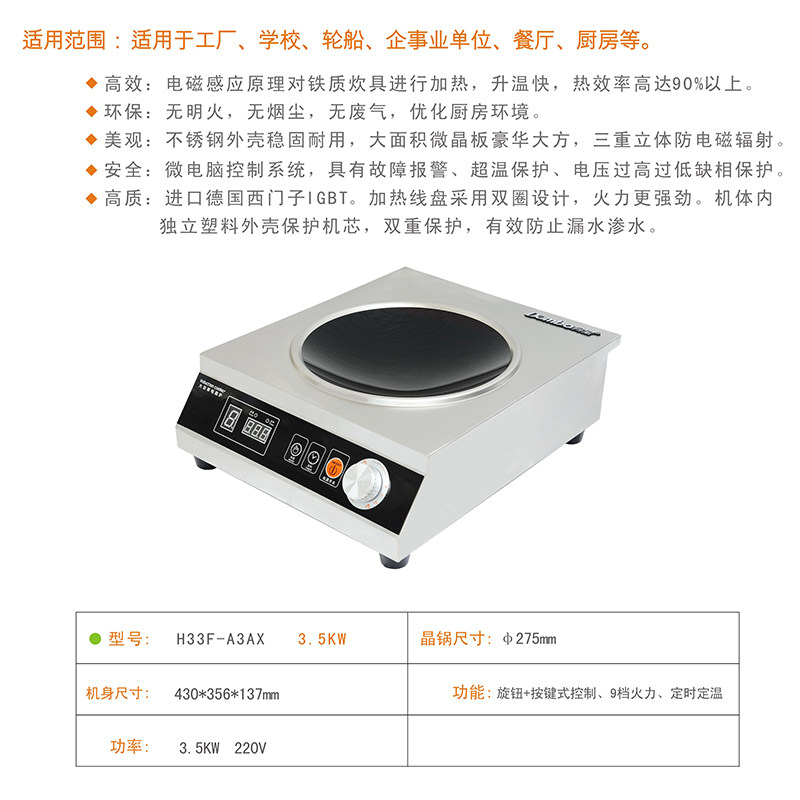 Tanbao commercial induction cooktop 3500w High power induction stove 3 5kw concave surface small frying stove key knob