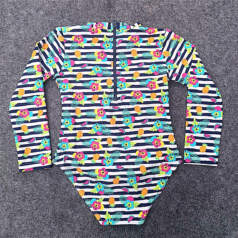 Export single children's long-sleeved swimsuit one-piece girl baby cute color girl swimsuit quick-drying surf swimsuit