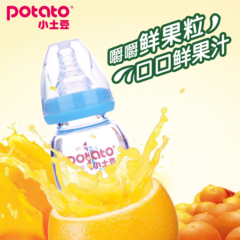 Small potatoes portable juice small milk bottle Mini beginner baby newborn baby drink water glass anti-fall silicone mouth 60ml