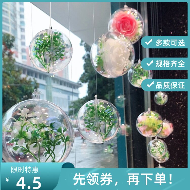 8CM transparent ball 1 strain small grass 10CM transparent ball 1 flower small grass 12CM transparent ball 1 dot blue flower small grass 14CM transparent ball 1 flower 3 small grass 16