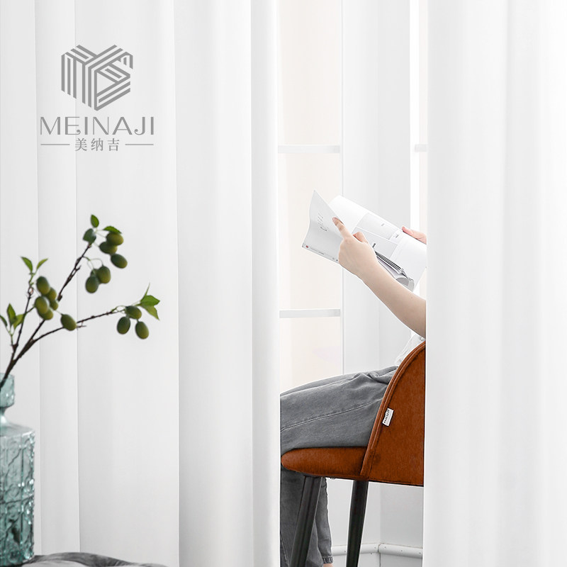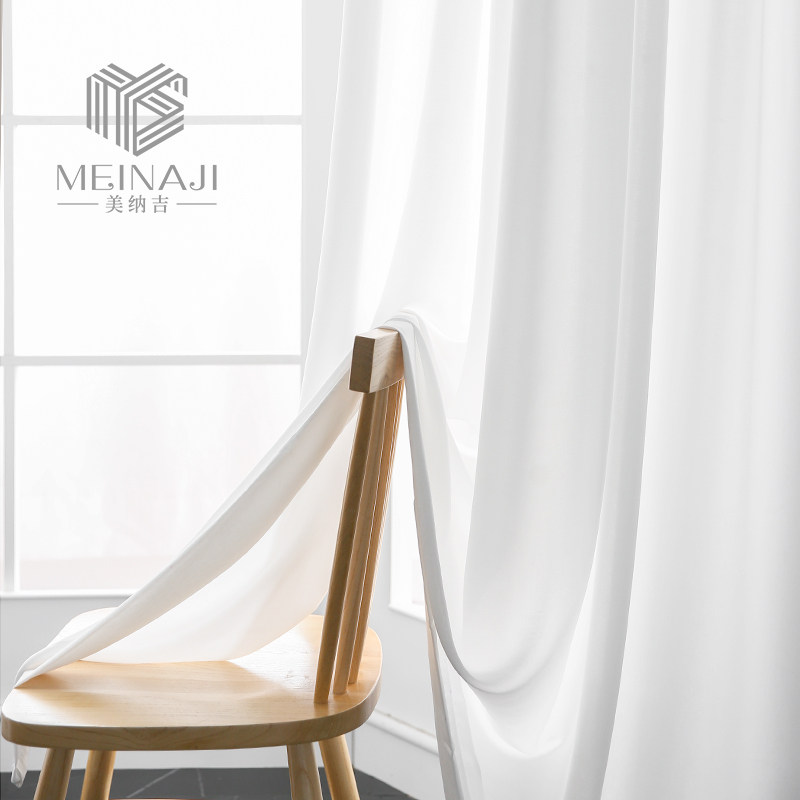 This white Japanese-style velvet gauze curtain is transparent and opaque to the white velvet living room semi-shading bay window balcony