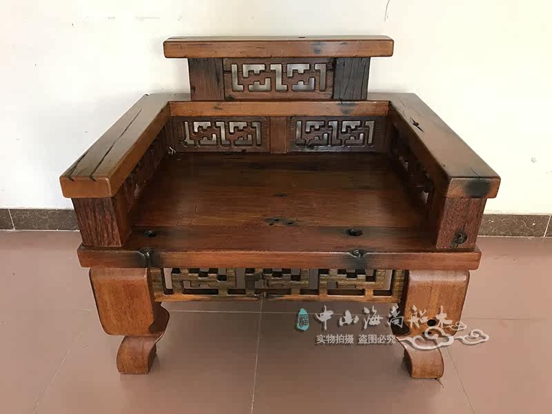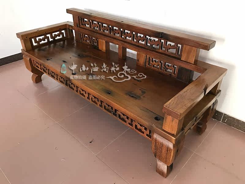 Old boat wood sofa chair combined solid wood ten thousand words sofa Living room full dress New Chinese meditation Classical Shipwreck Wood Furniture
