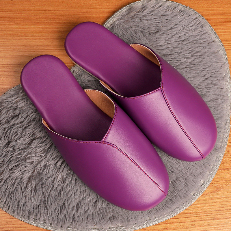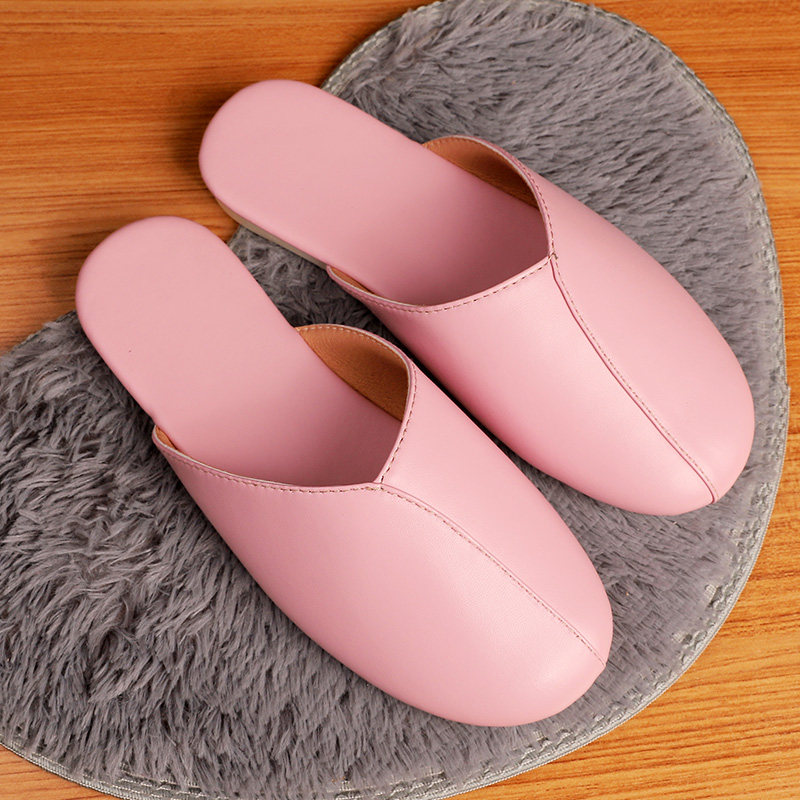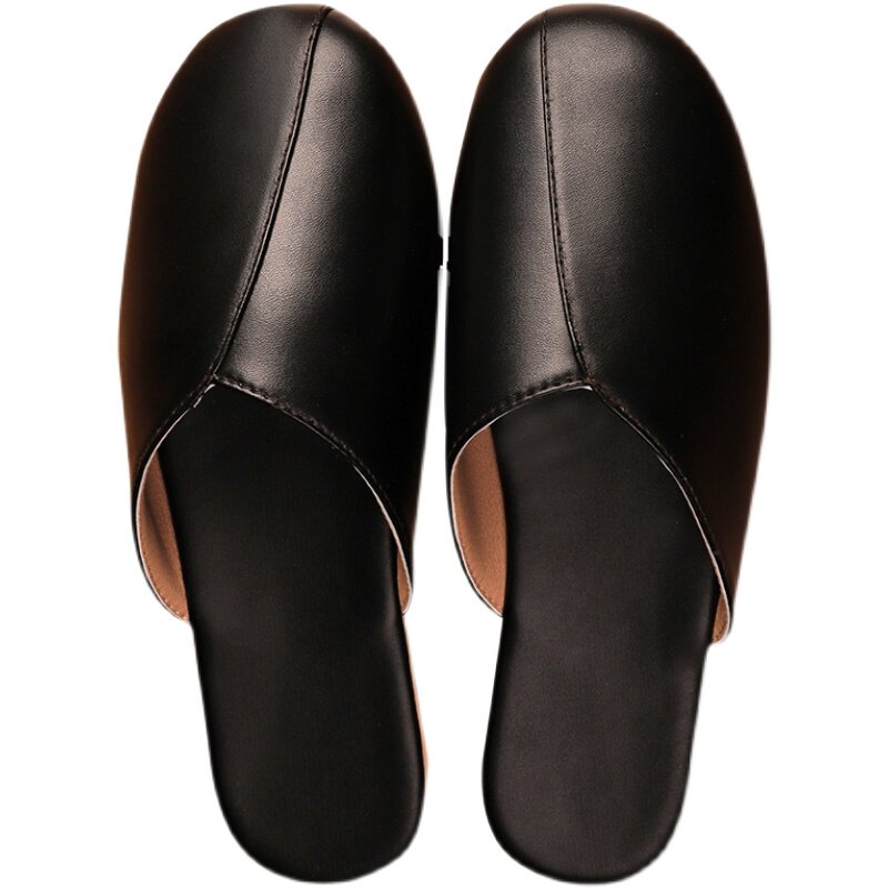 Japanese style PU leather spring and summer silent floor slippers Indoor leather slippers Japanese men's and women's non-slip soft bottom leather slippers