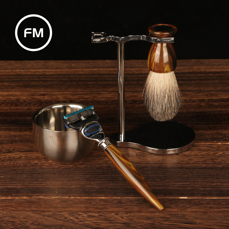 Manual razor razor set imitation horn scraper 5-layer head brush Hu soap razor gift set