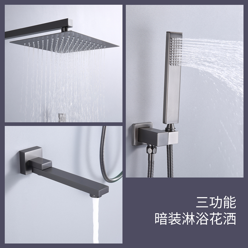 A two-gear 10-inch shower head shower B three-gear 10-inch shower head C two-gear 12-inch shower head shower D three-gear 12-inch shower head E single shower head (10 inches)